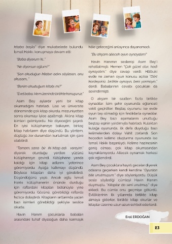 Havin  Hanım'ın  “Öyle  değil  efendi,  çocuklar   durdu. “Baba, önceki hafta başladığım kitabı   okudu.