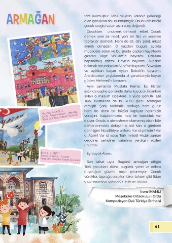 yansıması olmuştur. Bu vatana da yakışan budur. Ecrin Su CELEPCİ Ey büyük Ata’m,